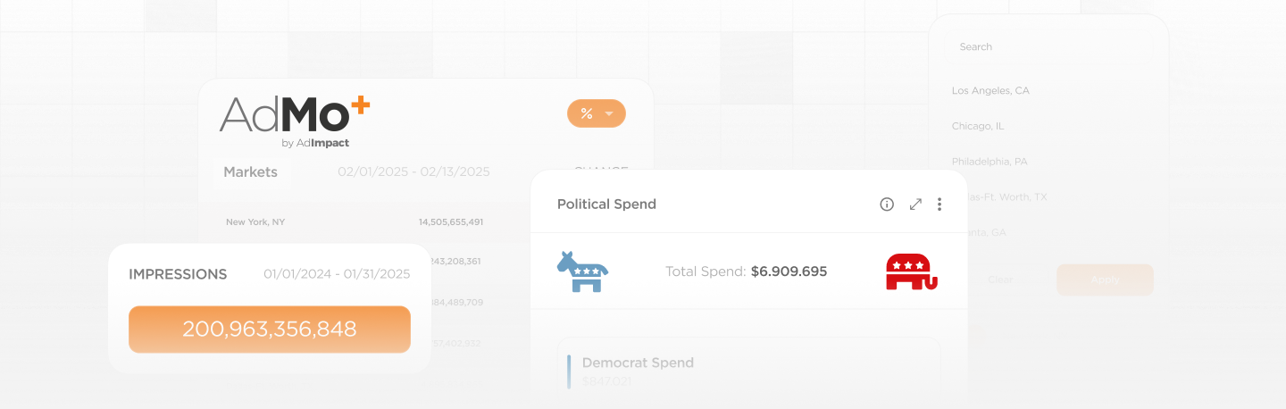 The industry’s first Custom Query Builder empowers you to analyze political advertising data exactly how they need, enabling deeper, faster strategic insights across elections, markets, advertisers, and media channels.
